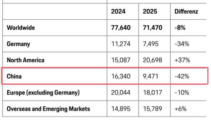 官方数据显示,2025年第一季度,保时捷全球交付71,470辆新车,同比下降8%,但区域表现堪称“冰火两重天”。